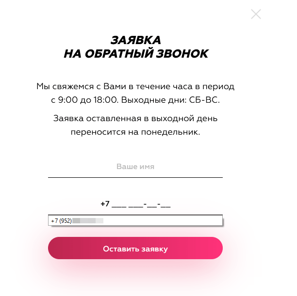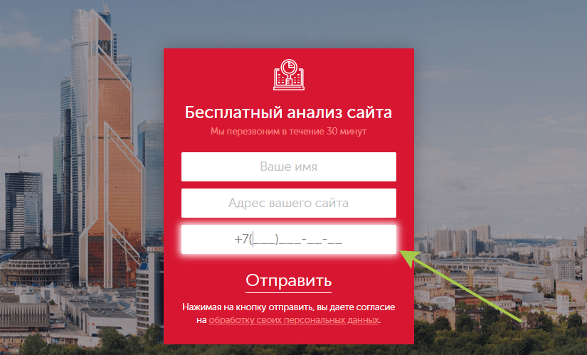 Also in the example you can see that in addition to the mask for entering a phone number, the form contains the names of the fields. This will make sending personal and other data as easy as possible.