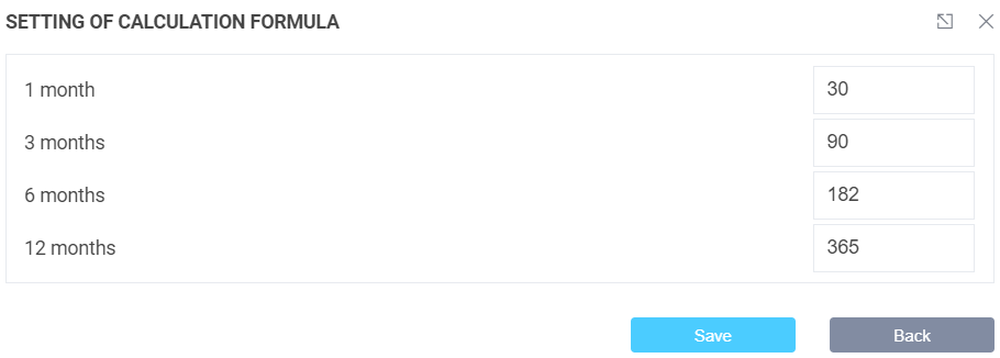 Once you have entered the values, click the "Save" button and you will be taken back to the formula editing window. This is where you may consider our formula setting finished. Don't forget to click the "Save" button again in the formula editing window.