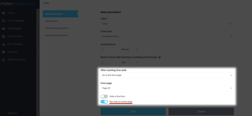 where the timer is placed. To do this, turn on the switch "Run only on the active page":