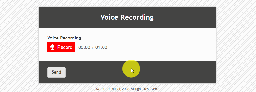 In the settings of this element, you can configure the maximum duration of a voice message, specify your own text for the buttons: record, stop and listen.