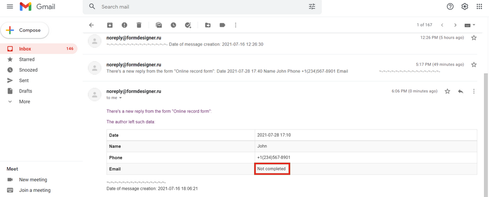 If the form is successfully completed, you will receive a notification to your email. If the checkbox was not activated, you will receive an email notification with all the existing fields in the form: