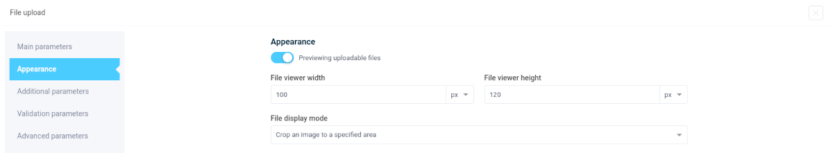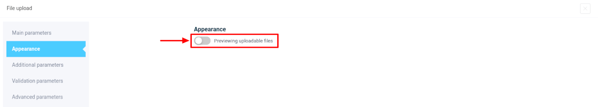 At the request of many users, we have added the ability to turn on the preview of uploaded files in the form. To do this, in the settings of the field, go to "Appearance" and there activate the switch "Previewing uploadable files":